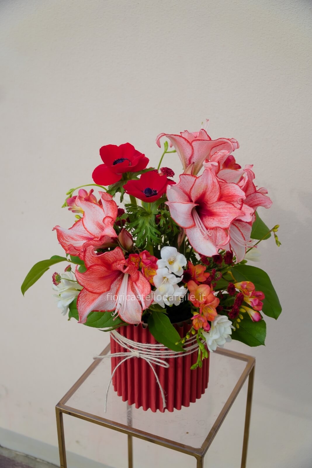 Ogni composizione è realizzata artigianalmente con fiori freschissimi, selezionati con cura per garantire la massima qualità e bellezza.